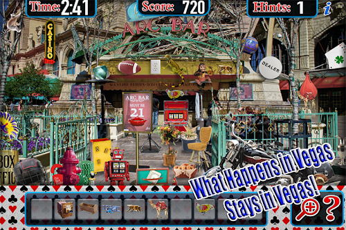 Hidden Object – Las Vegas Adventures is a magnificently designed finder game with numerous Sin City themed levels and fun Vegas items! How many Vegas treasures and landmarks can you find? FREE Game!
