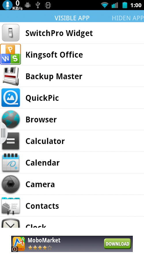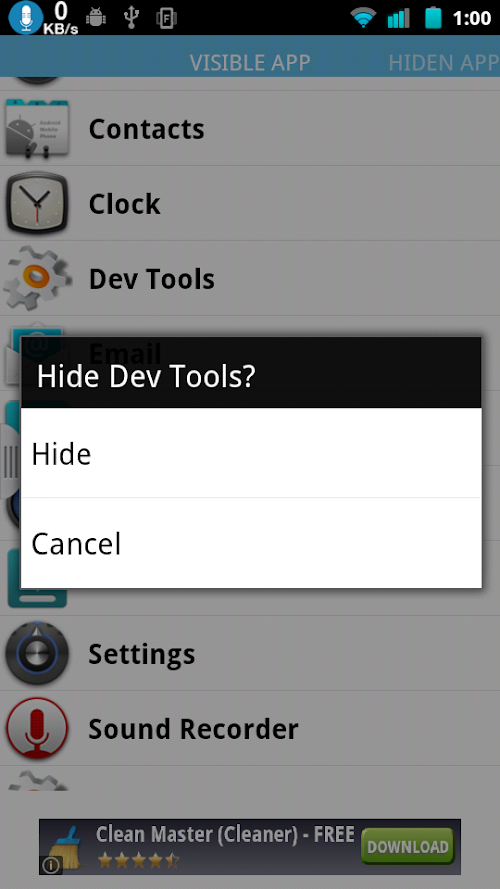 Note: You should UnHide all app before you uninstall Hide App Free to make all apps visitable.