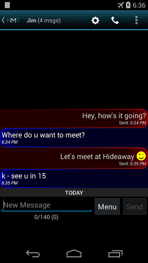Recent: Thread color themes! Detects problem with Hangouts. Compose message, decoy login button, auto-logoff, faster loading of long message threads, new menu button, export, custom statusbar notifications, "Wipe" feature, send/delivery confirmation, detects faulty SMS apps! Text/call blocking..
