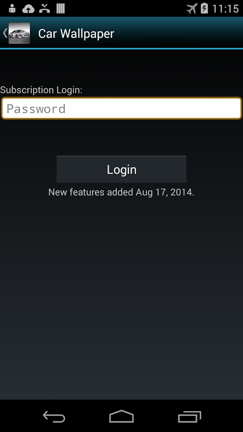 *Looks like a car wallpaper app that requires a subscription password