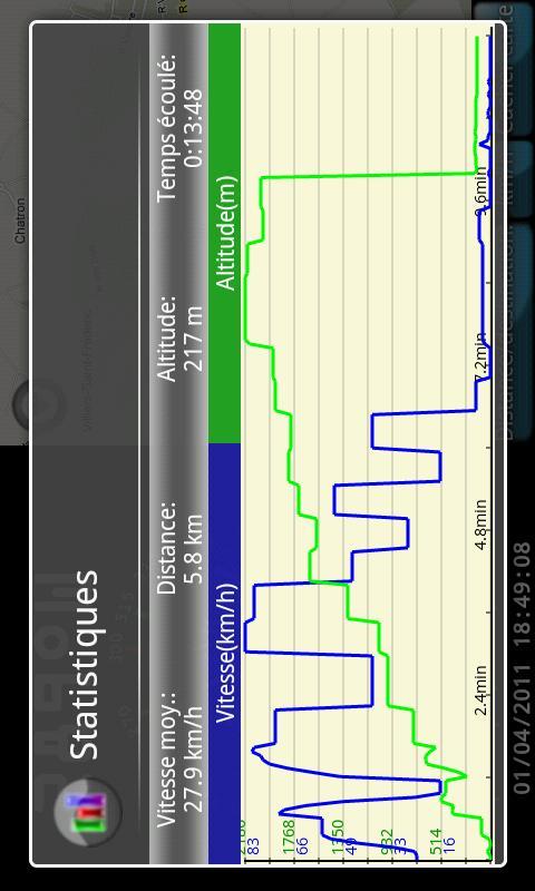 * Provide statistics of your track (speed, duration, altitude, distance, etc..) on a graph.