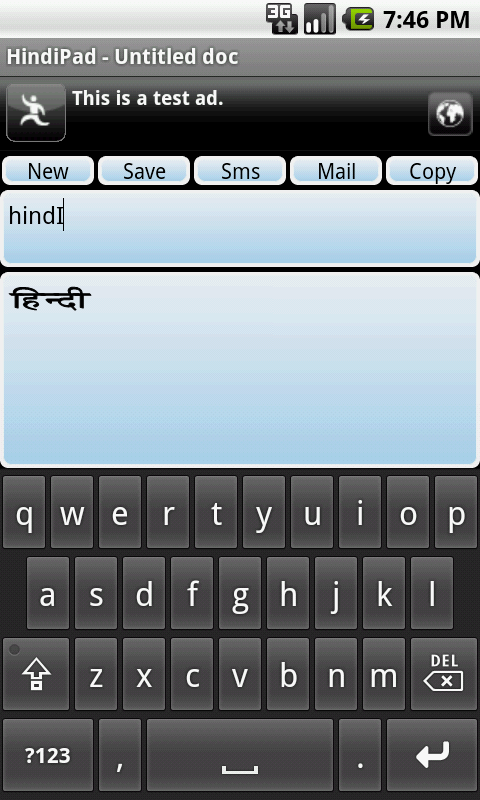 Please Note: The app purely depends on the unicode support of your device. As you start typing in english, if you dont see corresponding hindi text being generated, then probably your device doesnt support unicode and sorry that HindiPad cannot be of any use to you.