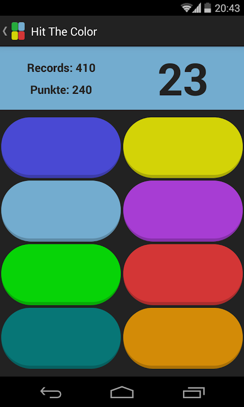 Hit as many colors as you can in 30 seconds! The faster you are, the more points you get.