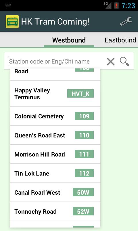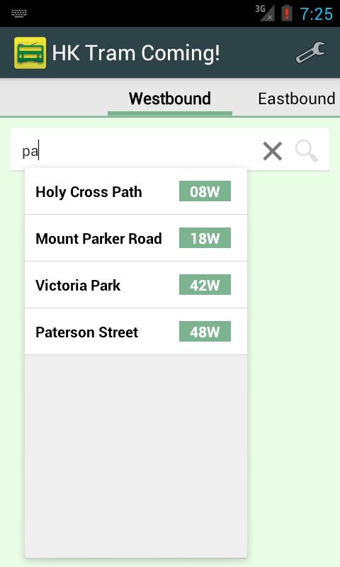 - Search station by typing station code, English or Chinese station name. For example, enter "vi", "公園" or "42" to select "Victoria Park" tram station in both English/Chinese interface.