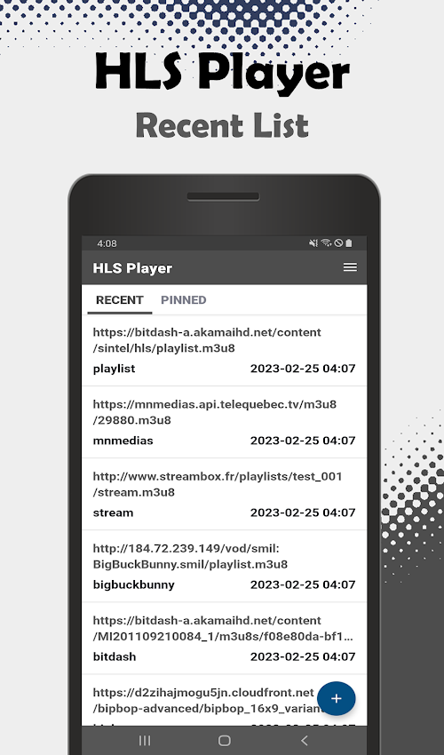 You need to add the video url to play the desired HLS video. Once played, the URL is saved along with the title, so you do not need to re-enter the URL for future playback. You can also manage your favorite URLs separately.