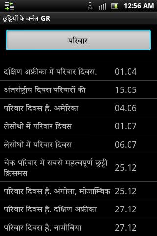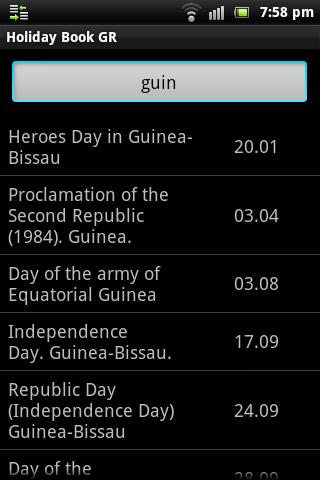 Type the word, and the application displays a list of holidays that have this word. You can search by country, such as "Mexico", by religion, such as "Buddhism", by the event, "independence" and so on.