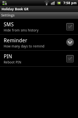 Remember, if you forget the password, you will have to remove and reinstall application. The data about your SMS and holidays will be lost.