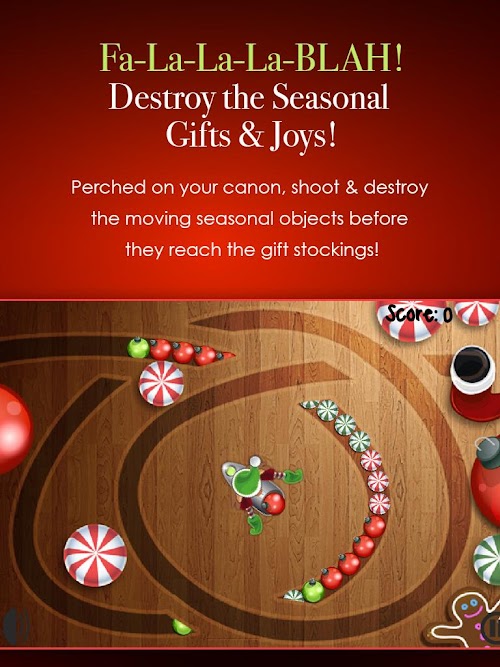 You are a grumpy elf and want to ruin the holiday season. Your mission is to stop all of the gifts from reaching the stocking. Use your cannon to shoot and match 3 similar objects.