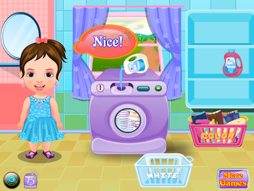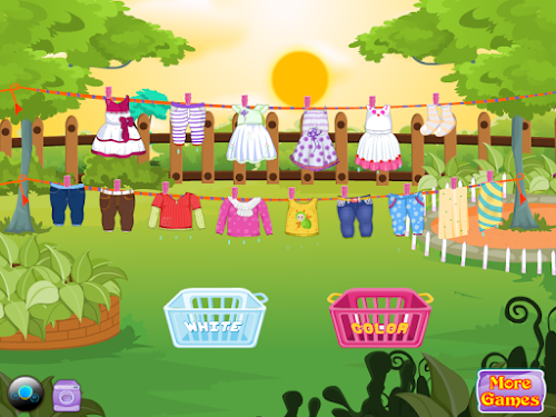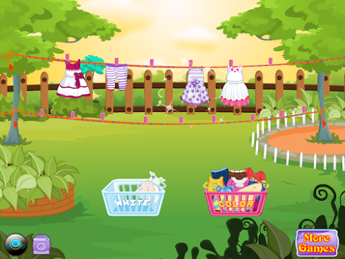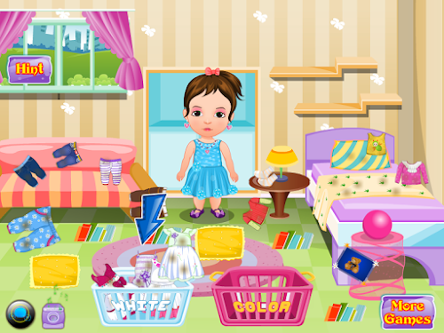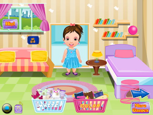 Abby must clean up their room and thought that today is the best day to do this. But there is a problem, she can not handle it alone, so we have to help her. In this game you have to help Abby to wash their clothes and clean up their room. For starters must separate all white colored clothes and then to arrange them a little room. Then you must go to the machine and put the whites separately and then colored clothes using another detergent. After washing the clothes have to go to the land behind the house, to beat them easily wind. Then you must pick the clothes and get them in the room, so you can heel and then could put them in the closet. After we finished with the clothes have to choose an outfit for the little Abby wants to give a fall party while her parents are not home. Have to choose some accessories, a pair of shoes and a dress. Thank you for choosing this great game and please try other games for girls to practice more.