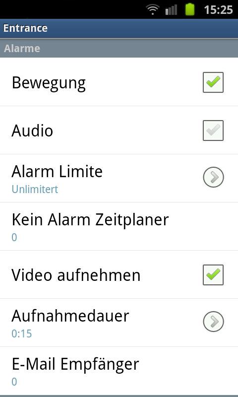 Whenever you launch the application on your iPhone you can see the live image sent to you by the installed camera. You can direct the camera in any direction simply by sliding your finger on the iPhone screen. You can also define alarm settings for each camera: if anything moves in front of the camera, a text message alerting you of this change will be sent to the number of your choice.