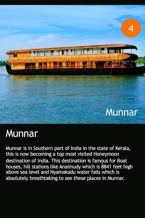 Top Honeymoon Destinations of India is an ideal short traveler informative app, which gives you information about the top 5 honeymoon destinations of India. Good to have it Installed in your mobile or tablet, wonderful page turning experience, with options to make it as wallpaper...... search and other sound options.