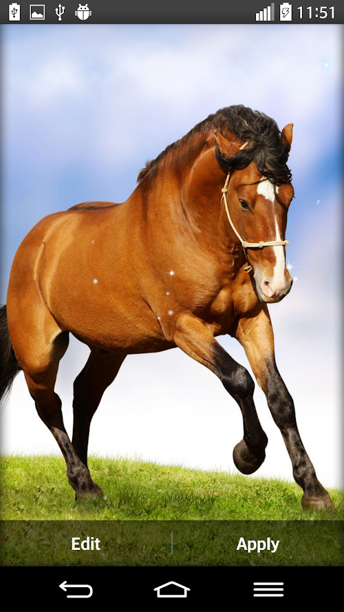 One of the most powerful creatures in the animal zoo can now decorate the screen of your phone! Delete your old animals live wallpaper! There is no need to have a tiger live wallpaper or a lion live wallpaper when you have a chance to beautify your display with the best wild animal live wallpaper on the market! Take a look at a galloping horse picture and feel as though you were riding a fire horse on a clear sunny day with the bright blue sky above you! Create your own horse games! Go horse betting or riding, groom your pet and experience life adventures together!