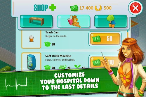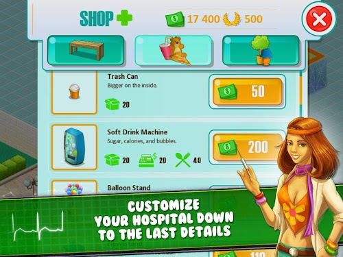 Customize your hospital down to the last details, buy high-tech equipment, choose rooms that will make your hospital center the most popular one!