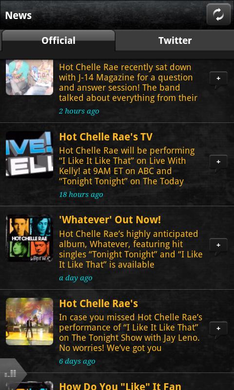 Keep up to date with all the latest Hot Chelle Rae news, tour dates, music, videos, pics, merch and more! Download the official Hot Chelle Rae app to stay connected to the guys and be the first to know about all things HCR!