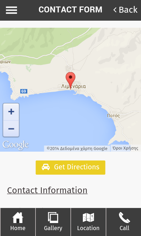 • Detailed information & images on the various beaches & places of interest enriched with geolocation (GPS) capabilities, allowing the user to easily find his way towards the desired location.