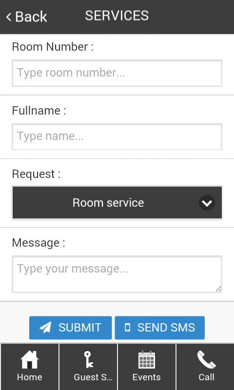 • The ability to request certain guest services (e.g. Room service) via the application (Reserved for Hotel Guests only).