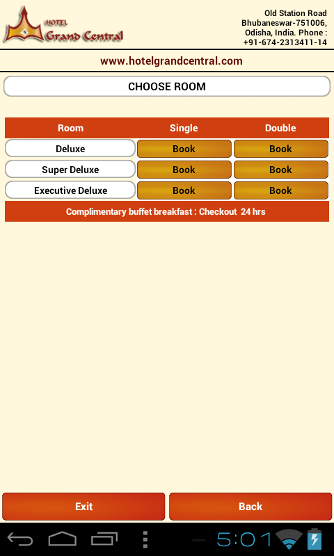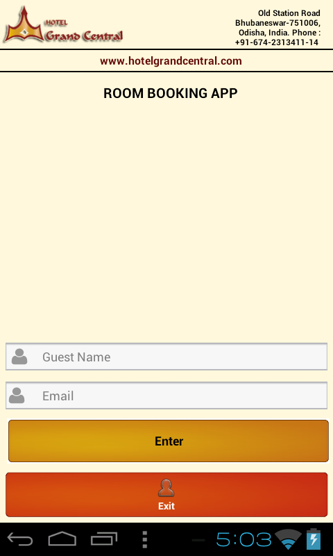 Room Booking Request App for Hotel Grand Central, Bhubaneswar