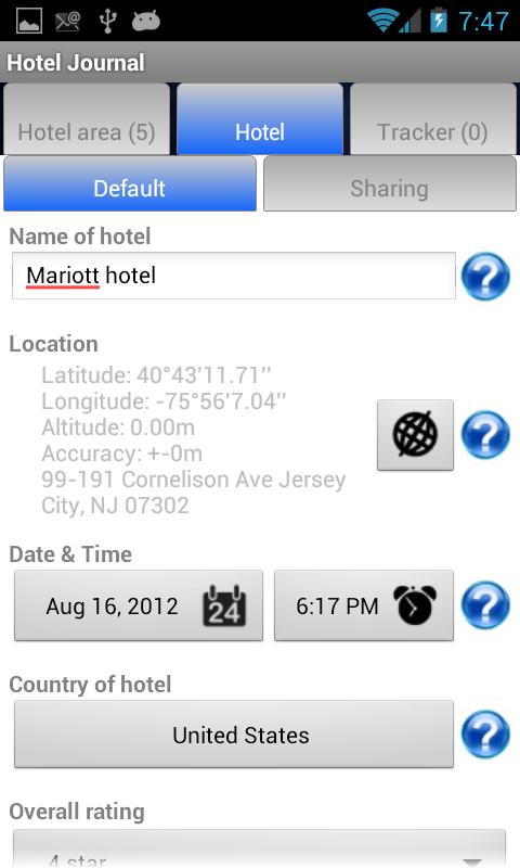 The Hotel Journal is a MajorForms android application that allows you to document your hotel experience incorporating images, video, audio recordings, and/or text. It enables the data to be synchronized to a free website created by you to store, edit, and/or share the hotel information you have collected with others. The application allows you to remember what the service was like, what amenities such as a pool, spa, etc. were available, check out times, maid service, and to see if costs have changed since you last visited the hotel. You can also allow colleagues and family to view your experience during or after your trip by sharing it through your website, Facebook or Google+, Twitter, Linkedin, e-mail, etc. Once the hotel data is uploaded to your website, you can edit the data, create reports and/or maps, and download the data or reports to spreadsheets or other documents. You do not need to have access to the internet to run the application, but if you do, you can upload your data and preserve it. Give it a try, it is free. Check out similar apps on www.majorforms.com.