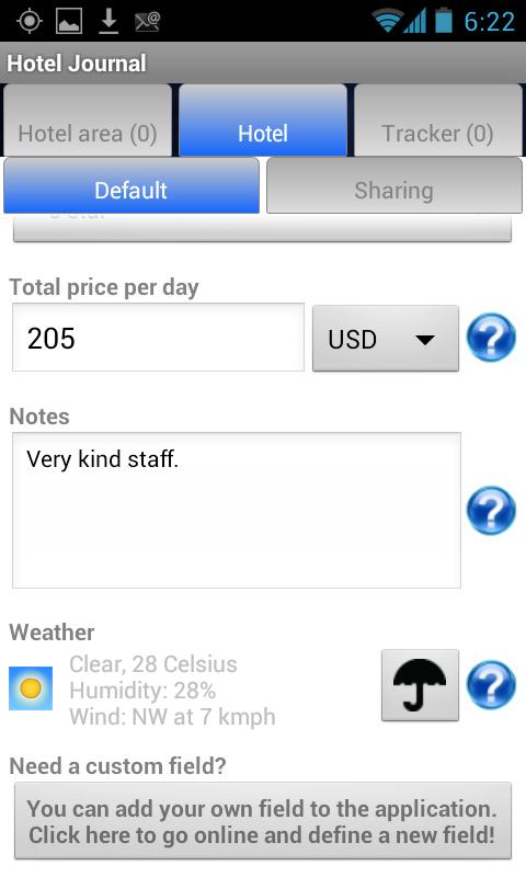 Document not only what the hotel looks like to help you decide if you want to stay there again, but record hotel amenities and features with ratings and photos and mark down the costs to see how prices have changed.