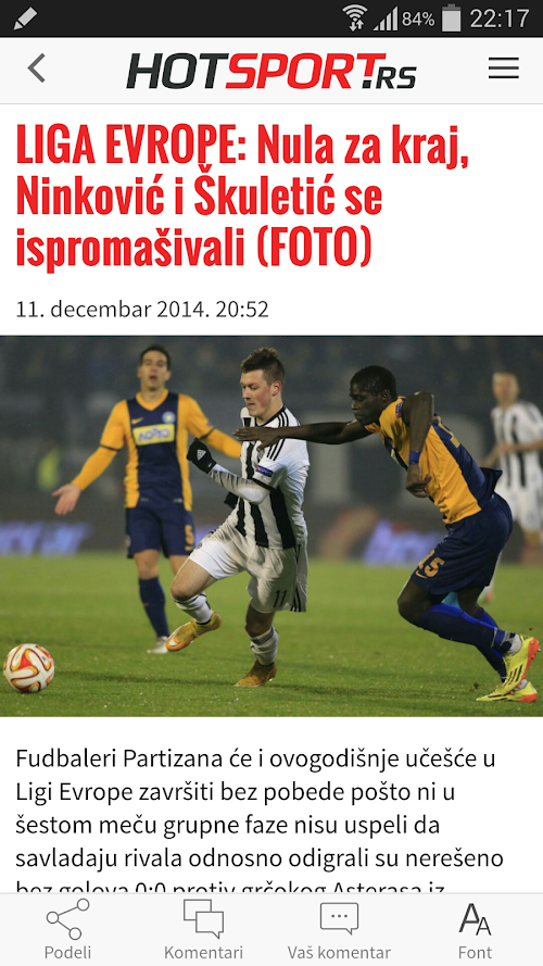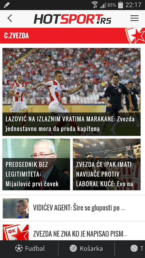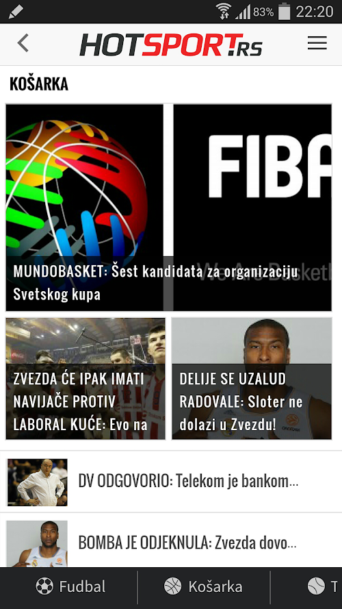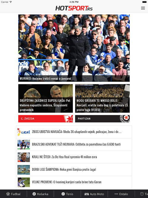 Navigation is simplified, svajpujte the latest news, rifrešujte them down movement, share news and photos on social networks, it only takes one finger movement not to miss even a fraction of the events from the world of sport.