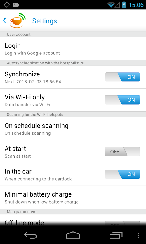 (* Warning *) If you can not find Wi-Fi hotspots nearby, please turn on "Scan" and walk around the city. Necessarily turn on GPS for better accuracy . This will help to map the coverage in your city for you and all other users. Found points you will be sent to the server and will appear on the map in one to two days.