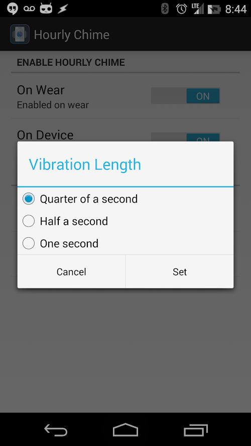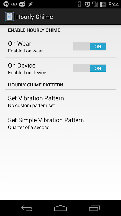 Hourly Chime for Wear allows you to configure a short vibration at the top of the hour, helping you keep track of your day.