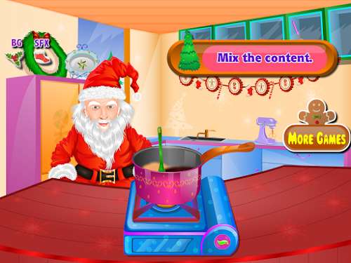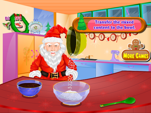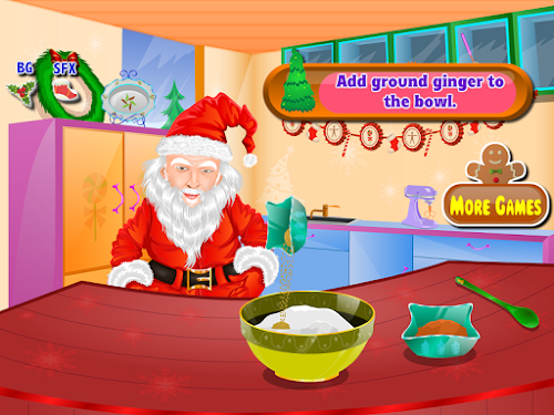 Hi, every year we prepare sweets for the Christmas party, this time we thought it a good idea to prepare gingerbread. This dessert is pleasing to all children and and you can offer like a desert for Santa Claus. We have no time to prepare gingerbread so please you help us. Will you help us? Do you think you are doing in the kitchen? Sure you handle especially if you pay attention to how your mother cook. The recipe is simple and sure you will not have problems with this kids game for Christmas. For everything to get it right will help you and Santa Claus, he is in the kitchen and is waiting for you.