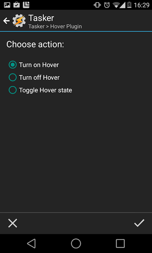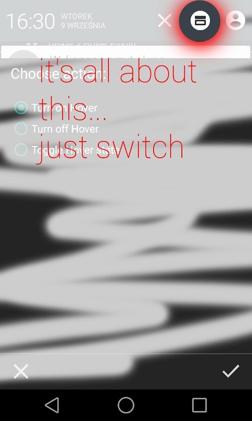 This app works only with Tasker or Locale and with Custom ROM with HOVER (heads up) functionality. It is made for Paranoid Android 4.6 or newer. If you want to try it on other ROM please note that is designed to support Paranoid Android and there is no guarantee that it will works on other Rom.