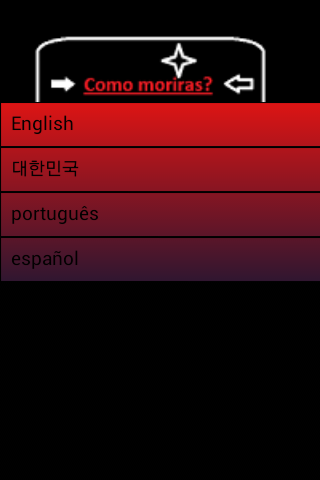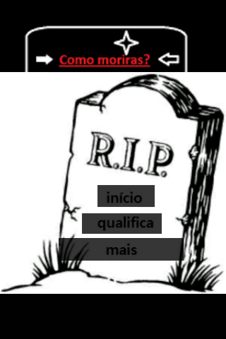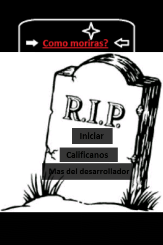 How do you will die? How moriras? As moriras will take away the doubt and fear of death How moriras? It is a very entertaining application that will predict your near or distant future, it will tell you the tentative way Might leave this world as moriras is the ideal place to hang out application, to satisfy that curiosity and thirst for knowledge into the unknown and death, can help you better understand what is the thin line between how you live and how moriras