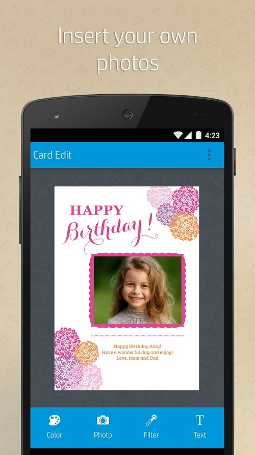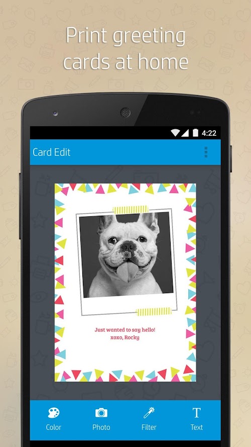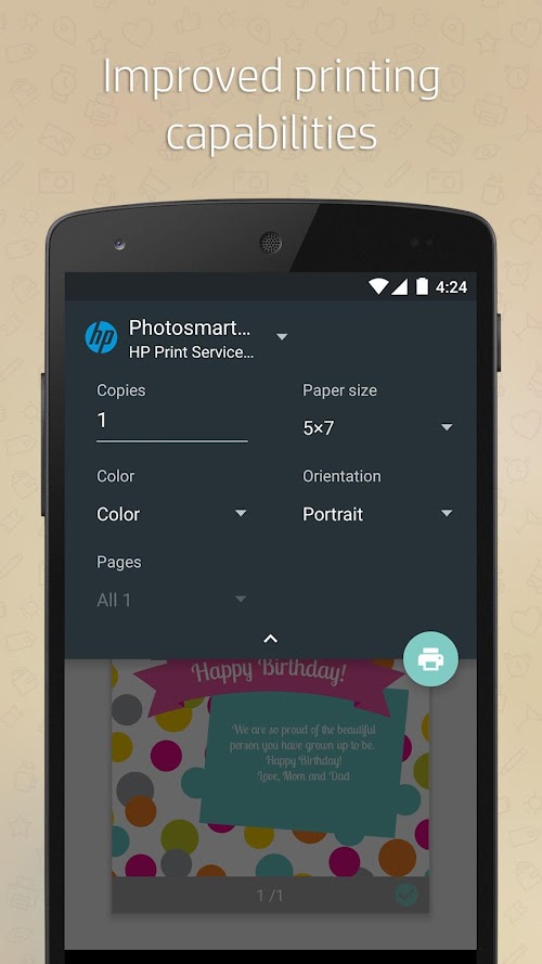 It’s simple to use and print with your Android Phone or Tablet onto 4x6 or 5x7 inch photo paper.
