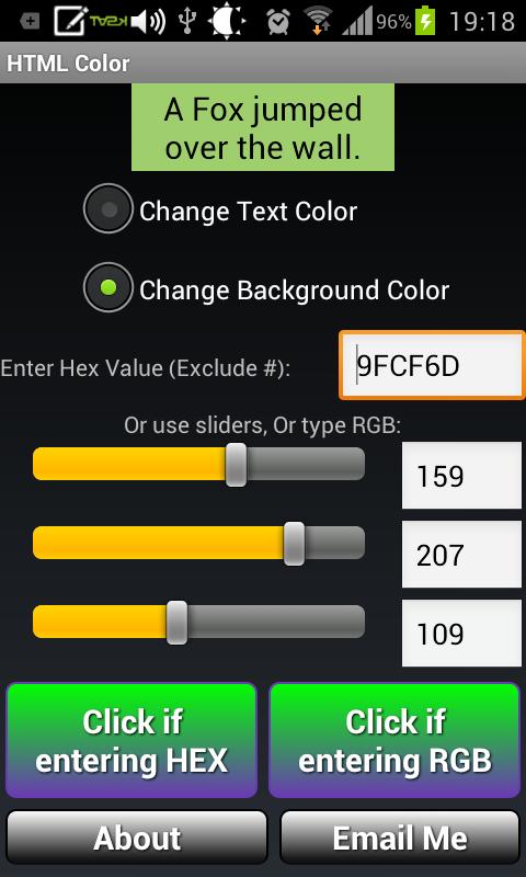 * Real time changing of Sample Text / Background when using RGB Sliders