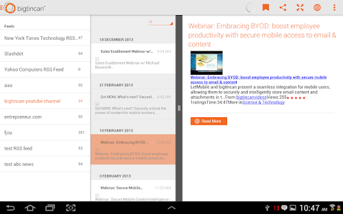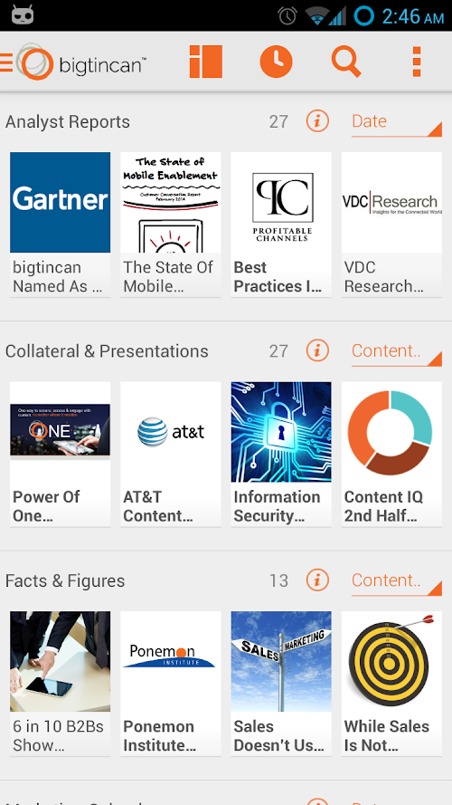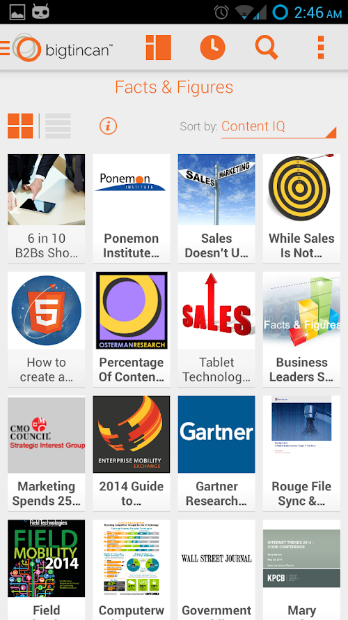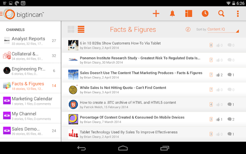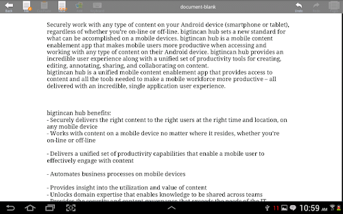 Securely work with any type of content on your Android device (smartphone or tablet), regardless of whether you’re on-line or off-line. bigtincan hub sets a new standard for what can be accomplished on a mobile devices. bigtincan hub is a mobile content enablement app that makes mobile users more productive when accessing and working with any type of content on their Android device. bigtincan hub provides an incredible user experience along with a unified set of productivity tools for creating, editing, annotating, sharing, and collaborating on content. bigtincan hub is a mobile content enablement app that provides access to content and all the tools needed to make a mobile workforce more productive – all delivered with an incredible, single application user experience.