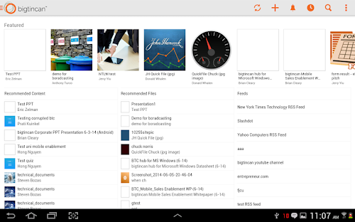 Securely work with any type of content on your Android device (smartphone or tablet), regardless of whether you’re on-line or off-line. bigtincan hub sets a new standard for what can be accomplished on a mobile devices. bigtincan hub is a mobile content enablement app that makes mobile users more productive when accessing and working with any type of content on their Android device. bigtincan hub provides an incredible user experience along with a unified set of productivity tools for creating, editing, annotating, sharing, and collaborating on content. bigtincan hub is a mobile content enablement app that provides access to content and all the tools needed to make a mobile workforce more productive – all delivered with an incredible, single application user experience.