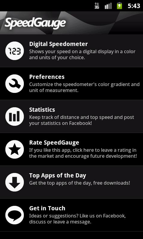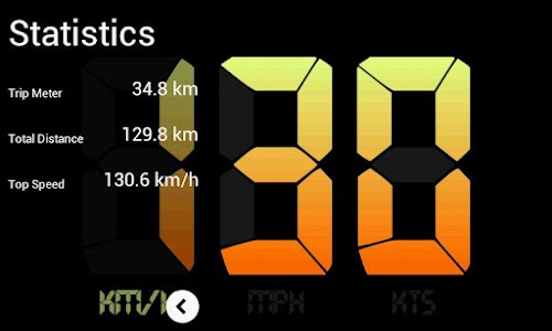 Displays your current speed on a digital speedometer, keeps track of your top speed and total distance. SpeedGauge also allows you to easily switch between units of measurement (miles/kilometers and knots) for use in your car, on a boat or on an airplane!