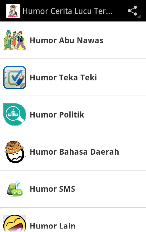 Humor Cerita Lucu Terbaru adalah aplikasi gratis yang berisi kumpulan cerita komedi dan humor yang lucu dan menarik. Aplikasi ini berisi beberapa kategori antara lain yaitu humor abu nawas, humor politik, humor teka-teki, humor bahasa daerah dan humor sms lucu. Anda bisa menggunakan aplikasi ini sebagai hiburan di waktu senggang.