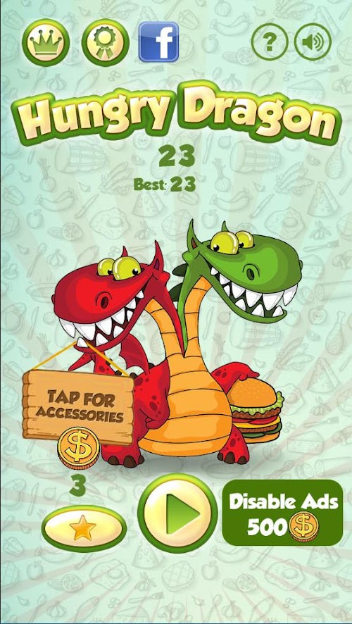 DISABLE ADS FOR FREE: A unique feature of this dragon game with is that you can disable ads by using collected coins. The coins, not only unlock new accessories, but can be used as an in-game currency that you can use to disable all ads. If you like the game so much and play it a lot, you should be rewarded for your dedication. A way to be rewarded is to have the ability to disable the ads entirely without spending any money but instead spending coins that you collect in game.