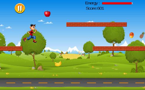 In this hungry runner game, our character will be running and eating some fruits while running. If he don’t eat fruits, then his energy will fall down and he will die. Keeping running by collecting fruits and be healthy.