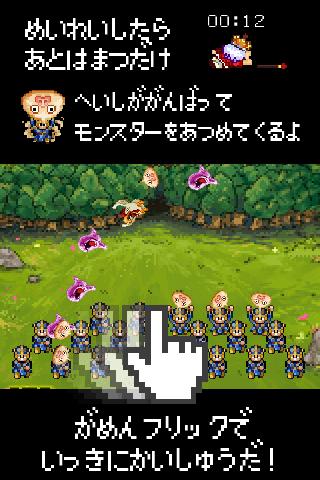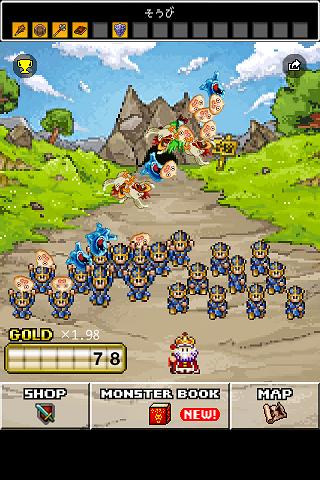 Give orders to your soldiers and send them into various dungeons to look for monsters.