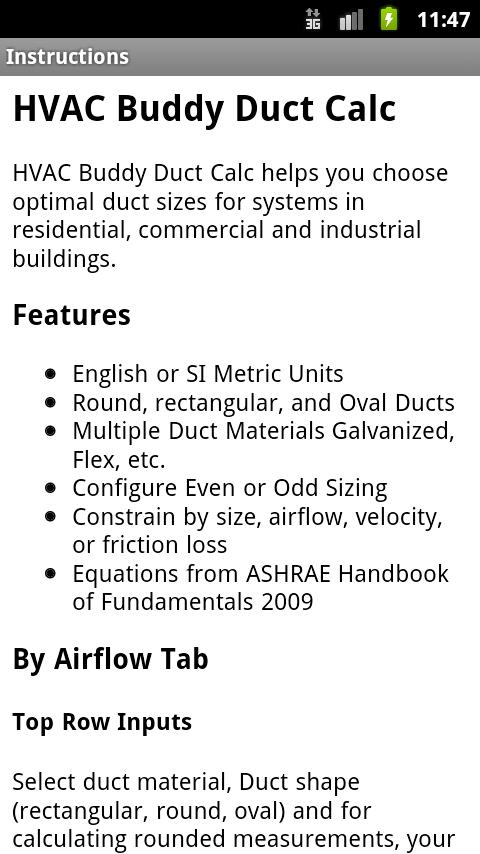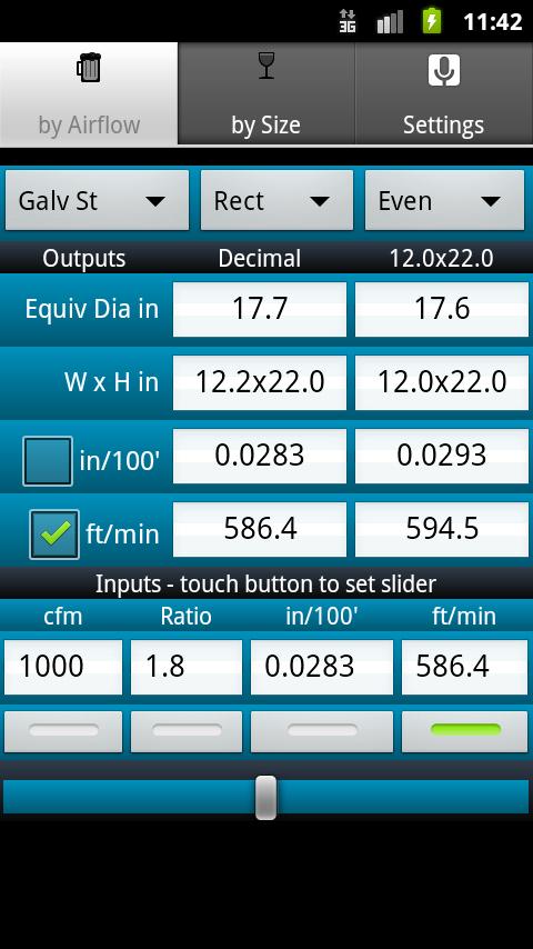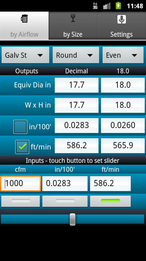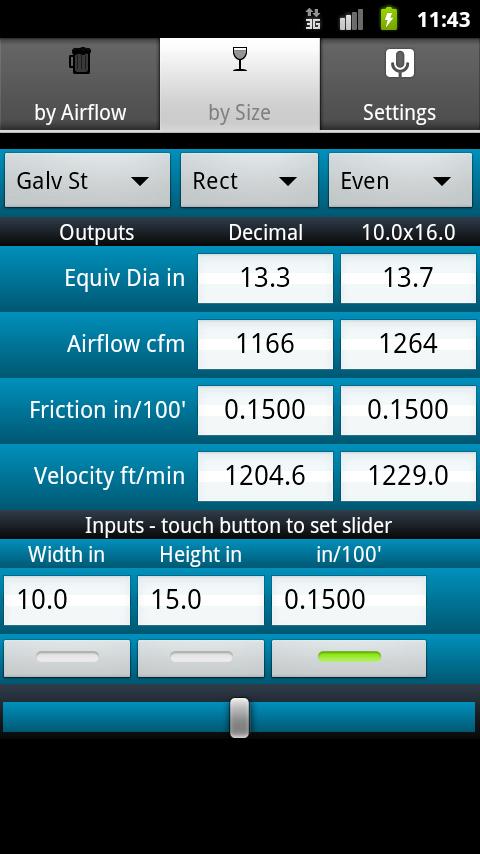 The best and number one selling duct sizing tool for Android devices with thousands of happy users. For less than the cost of a cardboard wheel ductulator always have a fast, accurate way to analyze ducts for design (by Airflow) or existing installations (by Size).