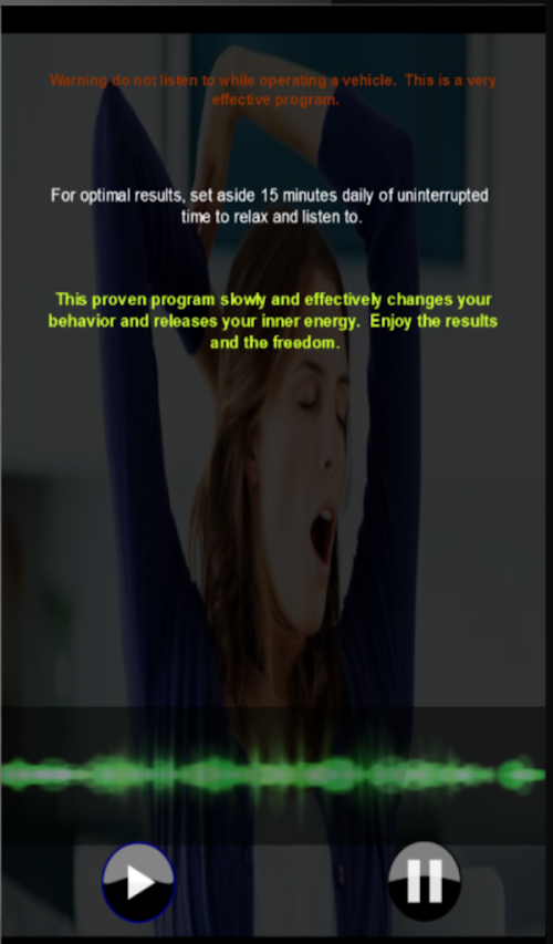 Discover the amazing Power of HYPNOSIS. All you need to do with this system is focus your mind and relax.....Imagine the fatigue leaving your body and the energy revitalize... what could you get done? Change the way you look at tasks, It is so much more freeing! It is fantastic not counting the minutes in a day. It's like having a one to one session with an hypnotist, every day of the week, without the cost or leaving the comfort of your own home.