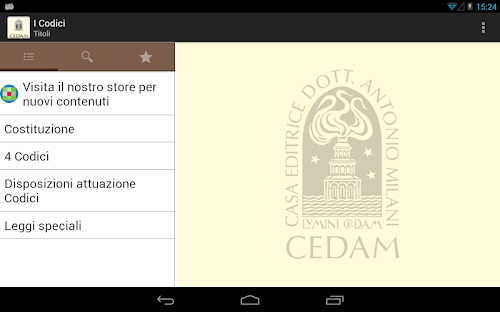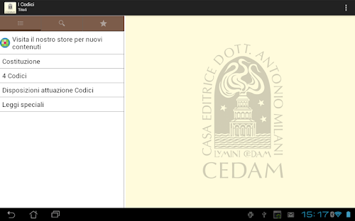"The Codes CEDAM" is the app allows you to browse for free and on the move, even without an Internet connection, the Constitution, the Codes 4 and its implementing provisions.