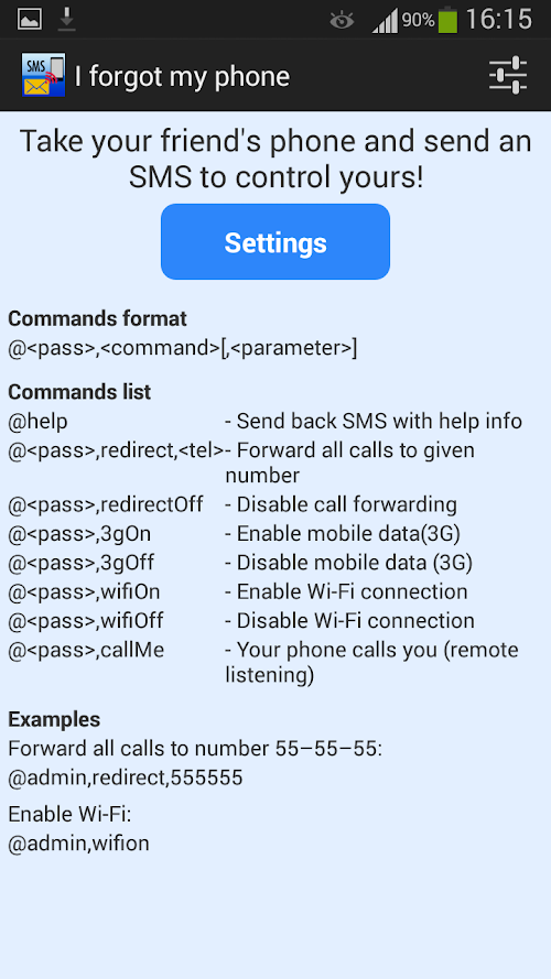 - 'yourpassword' is the password that you set in "I forgot my phone" app.