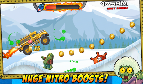 • Swipe down to target zombies and fall into hills for a speed rush.