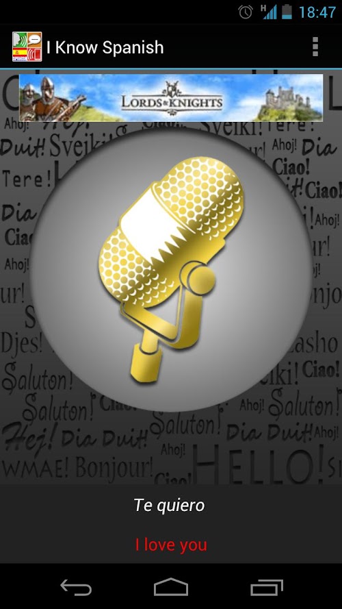 This application can translate your voice to spanish voice. No need keyboard only touch microphone icon and speak to device.