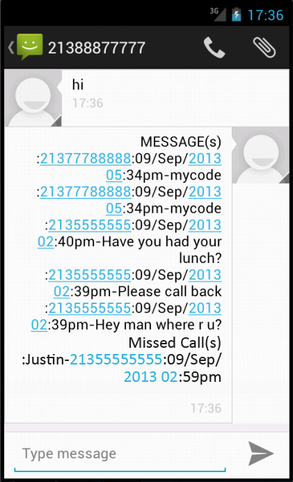 First you need to install this application on your cell phone and set your CODE. That is it. After that, you can use any phone(that phone no need to install this app) to send your cell phone to your code. "I Left My Phone" application will send you back to your unread sms and missed calls.