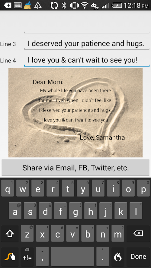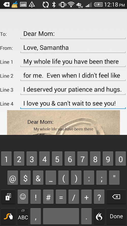 This app is a perfect way to quickly create a note showing your appreciation, love, respect, or any other sentiment. Your message is layered onto a beautiful image that you can share via Facebook, email, Twitter, Instagram, or simply save it and print it for him or her.
