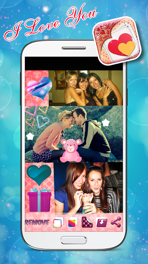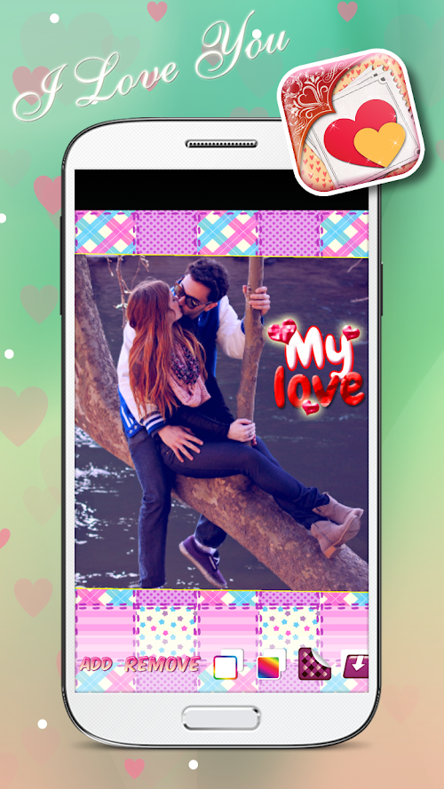 Instructions: When you enter this phenomenal photo editing app, you can choose a photo from your phone gallery to upload. You can then apply cute love backgrounds and patters. There is also an amazing collection of cute love photo stickers of all kinds.