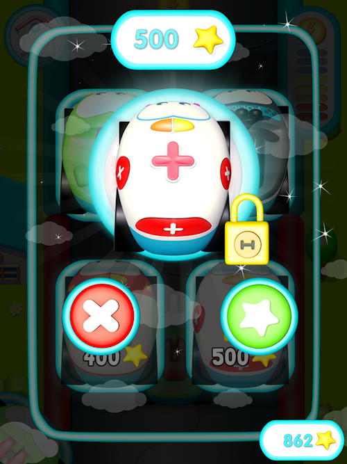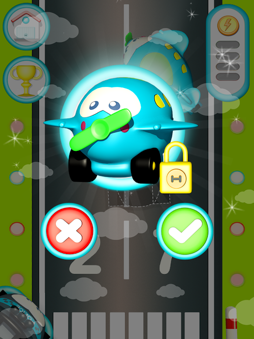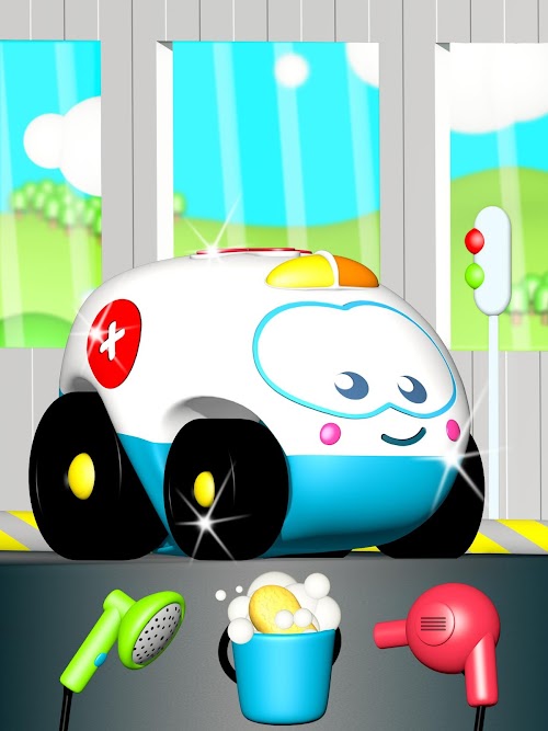 There are various types of car (fire engine, police car, ambulance, etc.) to choose on the screen, with different alarm sounds and lights.