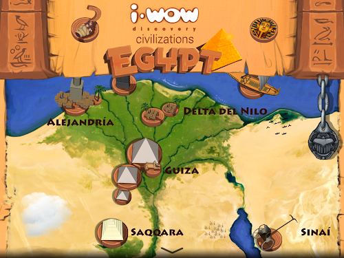 Opening the App for the first time will bring you to the main EGYPT screen from where you can access these different sections: