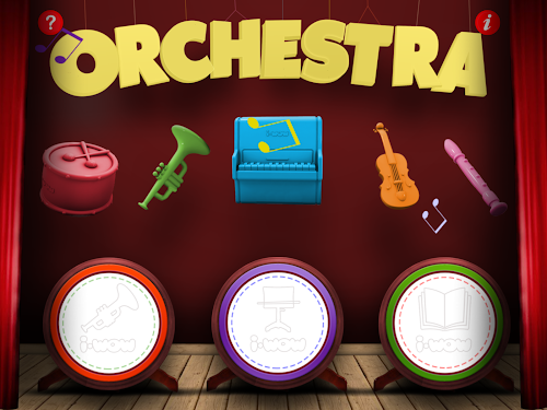 Conductor mode: Choose a tune and make your own mix with the different instruments, placing them on the screen.